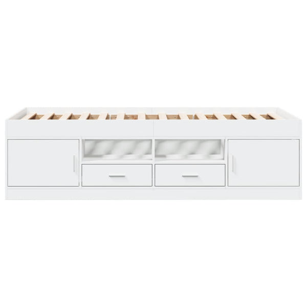 Valkoinen vuodesohva laatikoilla 75x190cm puinen