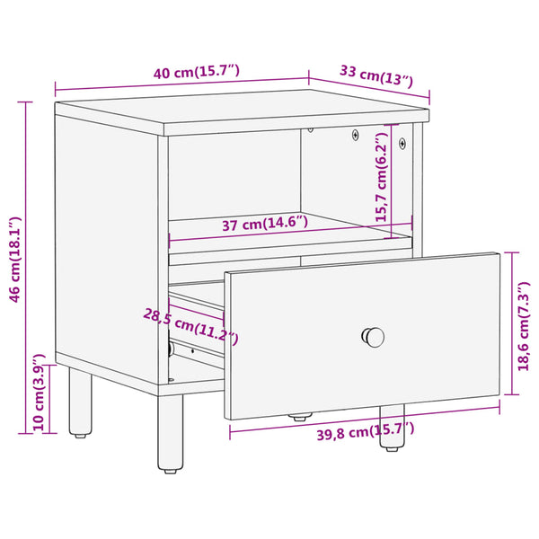 Yöpöydät 40x33x46cm 2 kpl akaasiapuu