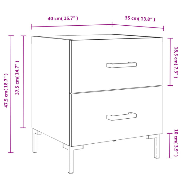 Harmaa yöpöydät 40x35x47,5cm 2 kpl sonoma puinen
