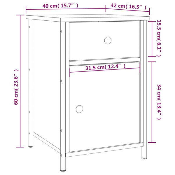 Harmaa yöpöydät 40x42x60cm 2 kpl sonoma puinen