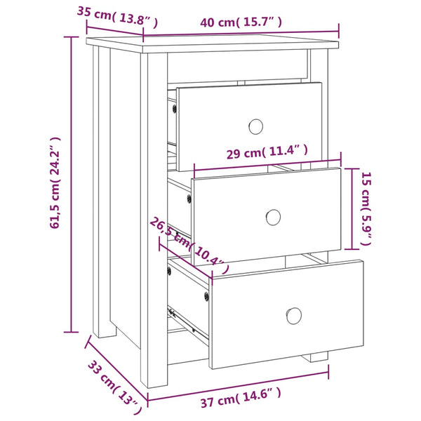 Hunajanruskea yöpöydät 40x35x61,5cm 2 kpl, mänty