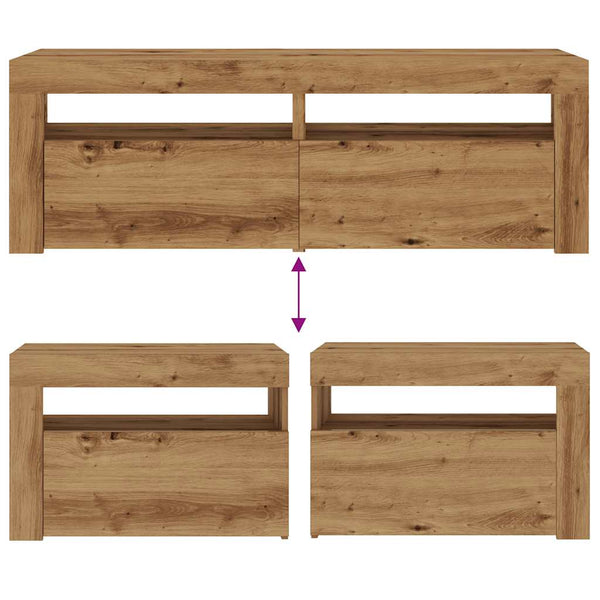Tammi yöpöydät 60x35x40cm 2 kpl led-valoilla käsityöläinen