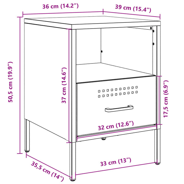 Pinkki yöpöydät 36x39x50,5cm 2 kpl kylmävalssattu teräs