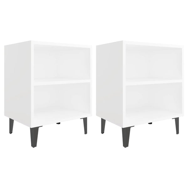 Valkoinen yöpöydät metallijaloilla 40x30x50cm 2 kpl
