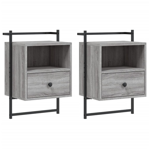 Harmaa yöpöydät seinälle 40x30x61cm 2 kpl, sonoma, puinen