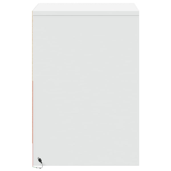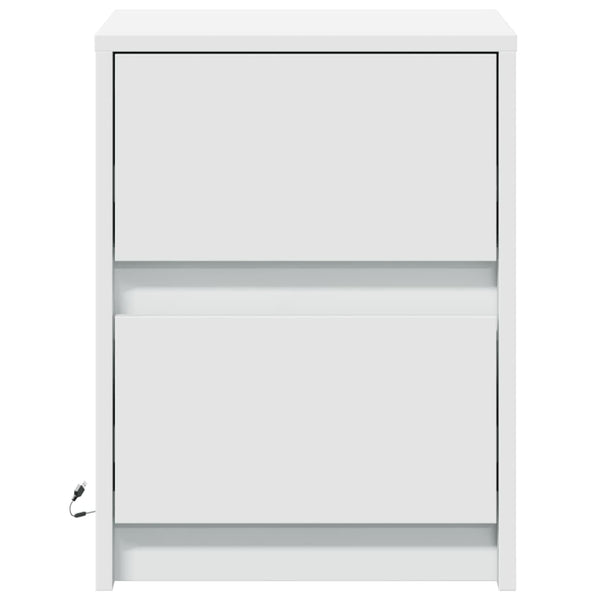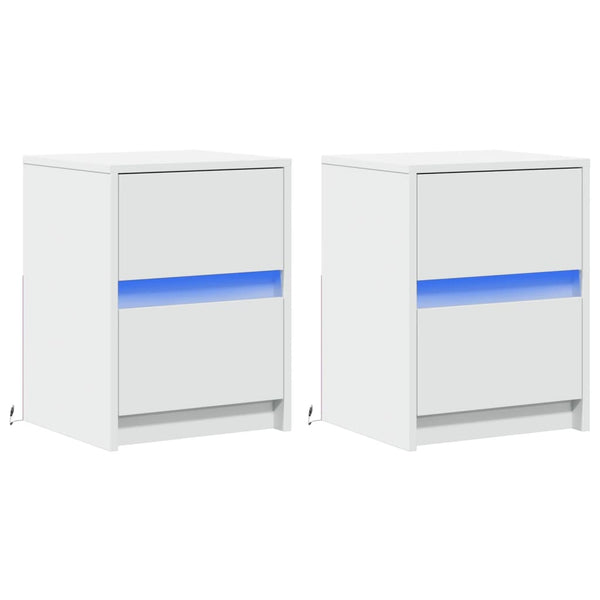 Valkoinen yöpöytä led-valoilla 2 kpl puinen