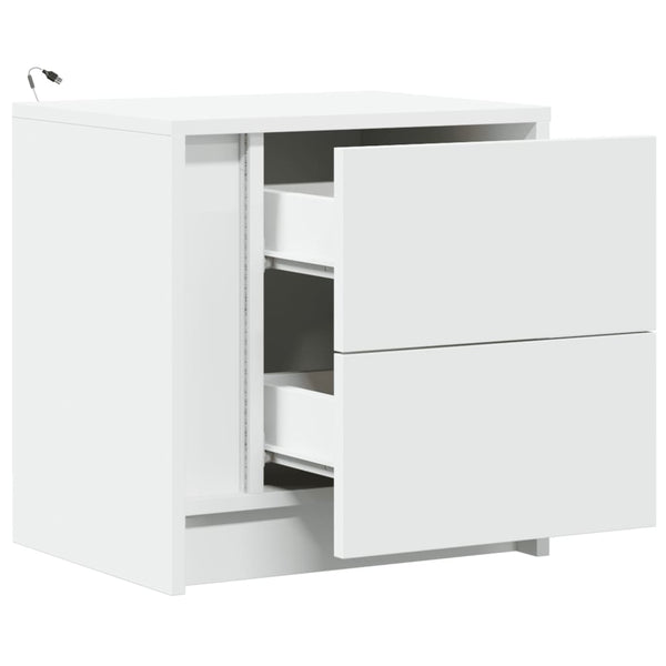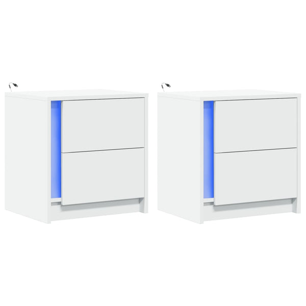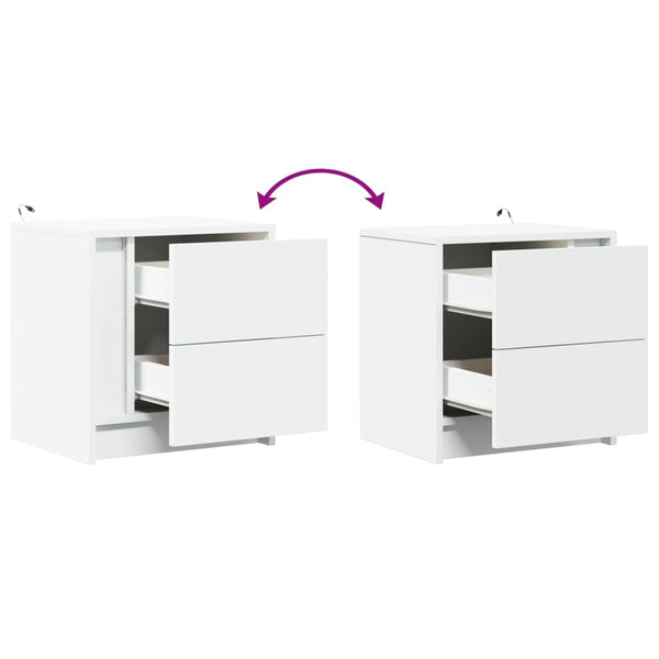 Valkoinen yöpöytä led-valoilla 2 kpl puinen