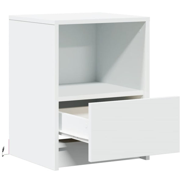 Valkoinen yöpöytä led-valoilla 2 kpl puinen