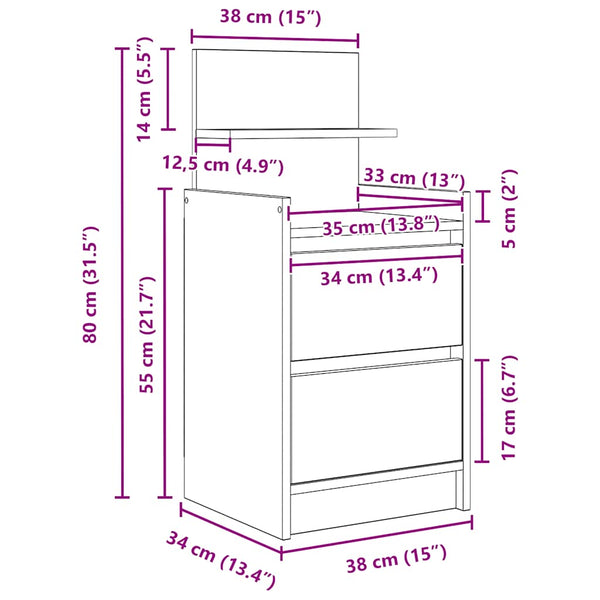 Musta yöpöytäkaapit 38x34x80cm 2 laatikkoa 2 kpl